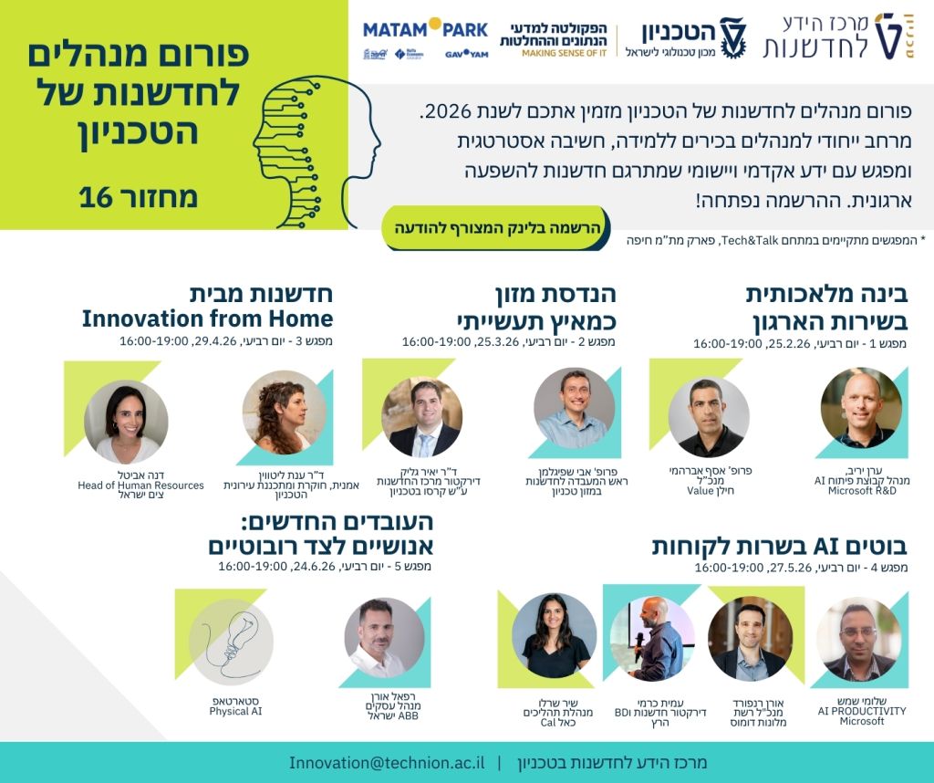 אנו מזמינים אתכם להצטרף למחזור ה-16 של פורום מנהלים לחדשנות, שיתקיים בין החודשים פברואר ויוני 2026 .